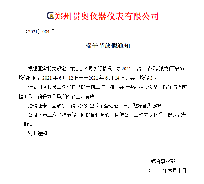 根據(jù)國家相關(guān)規(guī)定,并結(jié)合公司實際情況,現(xiàn)對2021年端午節(jié)假期做出以下安排: