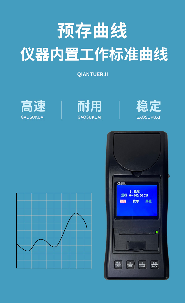 貫奧色度檢測儀可快速準(zhǔn)確測定地表水、地下水、城市污水及工業(yè)廢水中色度指標(biāo),濃度直讀;可廣泛用于水廠、食品、化工、冶金、環(huán)保及制藥行業(yè)等部門。儀器是由單個的固定波長固定用途的分光光度計糅合而成的,采用分光光度法原理對各參數(shù)進(jìn)行測量,在儀器中建立不同參數(shù)的濃度顯色程度與吸光度的線性曲線,儀器通過對顏色的辨別,得出被測水樣的濃度。本儀器采用全中文菜單,操作簡易易懂,使用方便快速測量準(zhǔn)確度高。