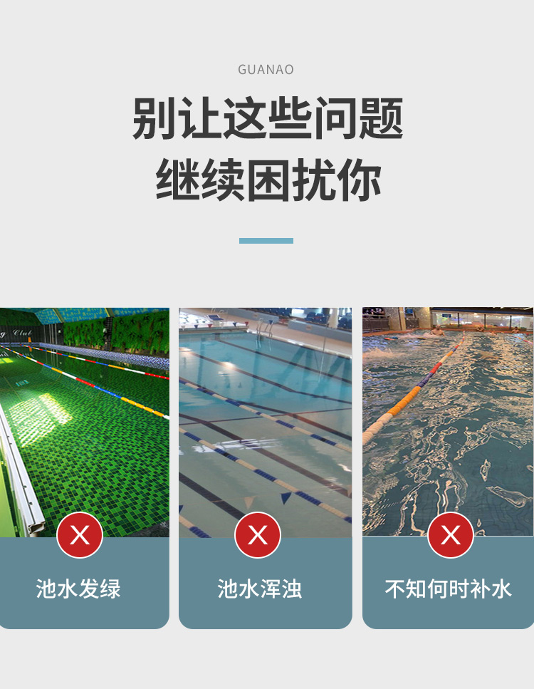 4、檢測精準(zhǔn),項目齊全。貫奧泳池水質(zhì)監(jiān)測儀器設(shè)備可檢測12個常規(guī)項目,參數(shù)可自由定制。